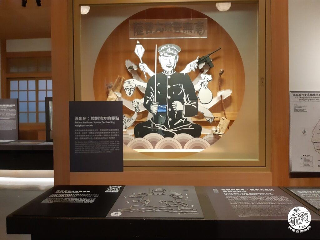 ▲總督府在台灣各地廣設派出所,並配合保甲制度來控制地方社會。上圖為「南無警察大菩薩海報」,是原作是展覽會上的海報作品(•‿•)