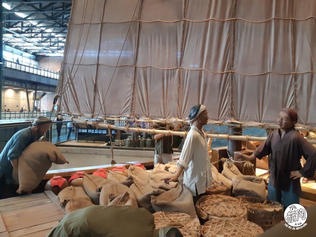 ▲渡海來台的人們,包含移民、商人、船主、眾多水手,甚至還有偷渡客呢!這套蠟像模型相當逼真壯觀,現場看更能體會這樣的時空背景喔(๑´ㅂ`๑)