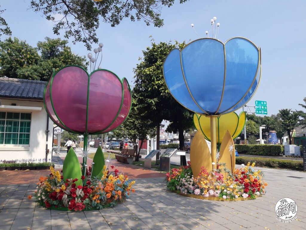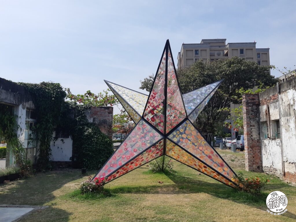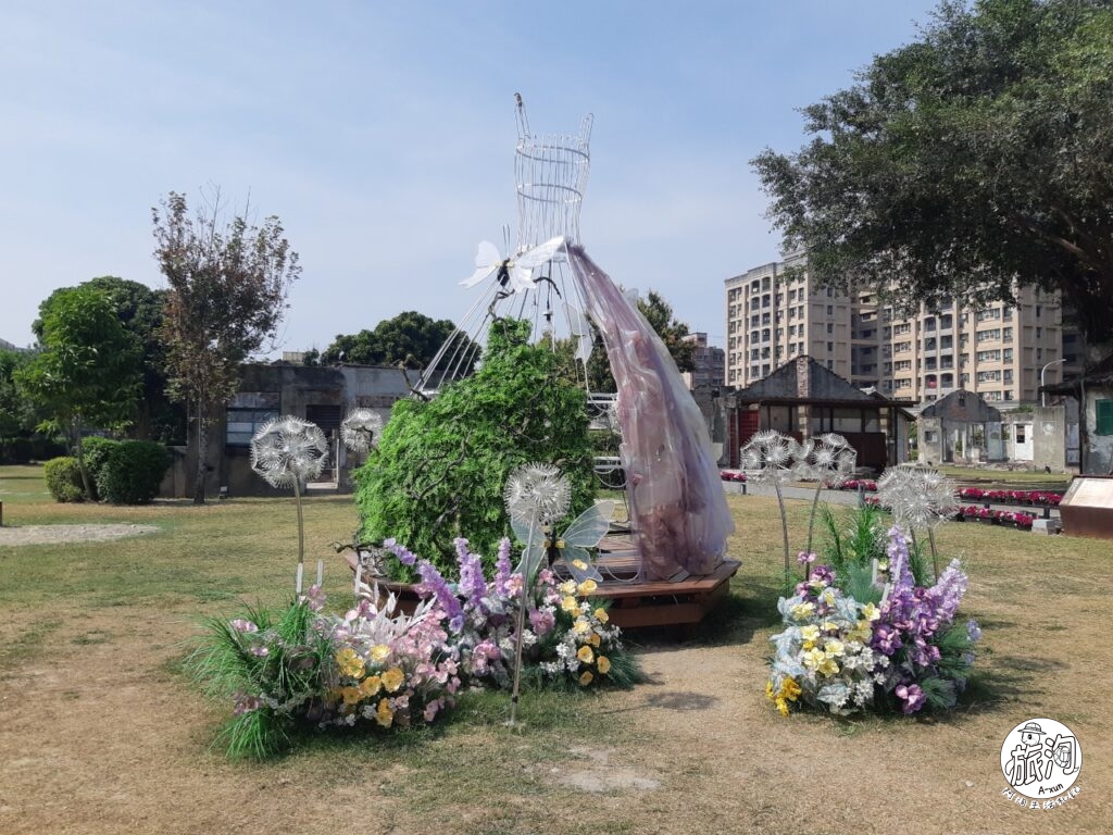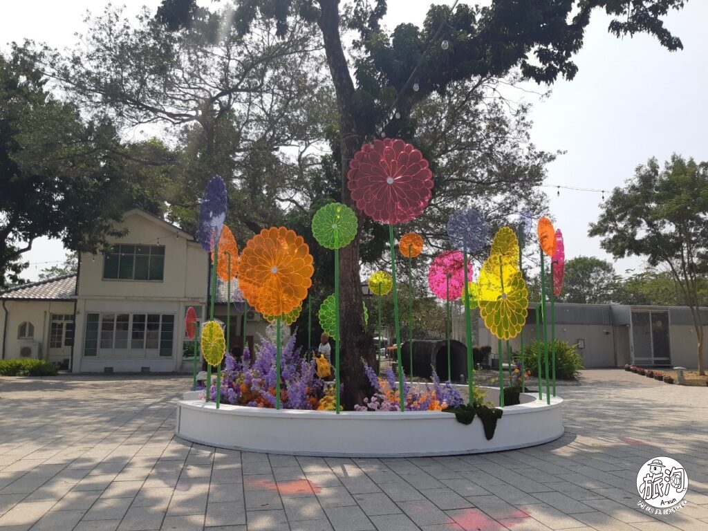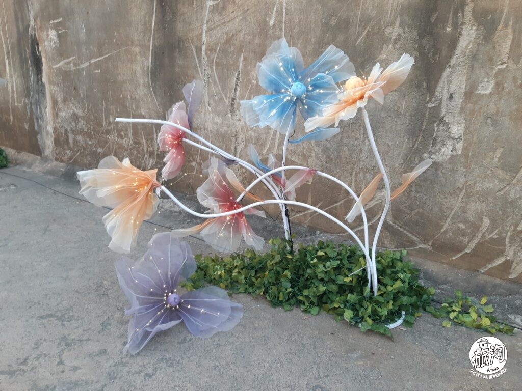 ▲《記憶之花》,以巨型花朵呈現,運用壓克力板材透光特性,再於花朵內部設計轉盤結構,以剪影的風格展現過去的花華年代(夜晚點燈後才可以看到喔)(●’▿’●)