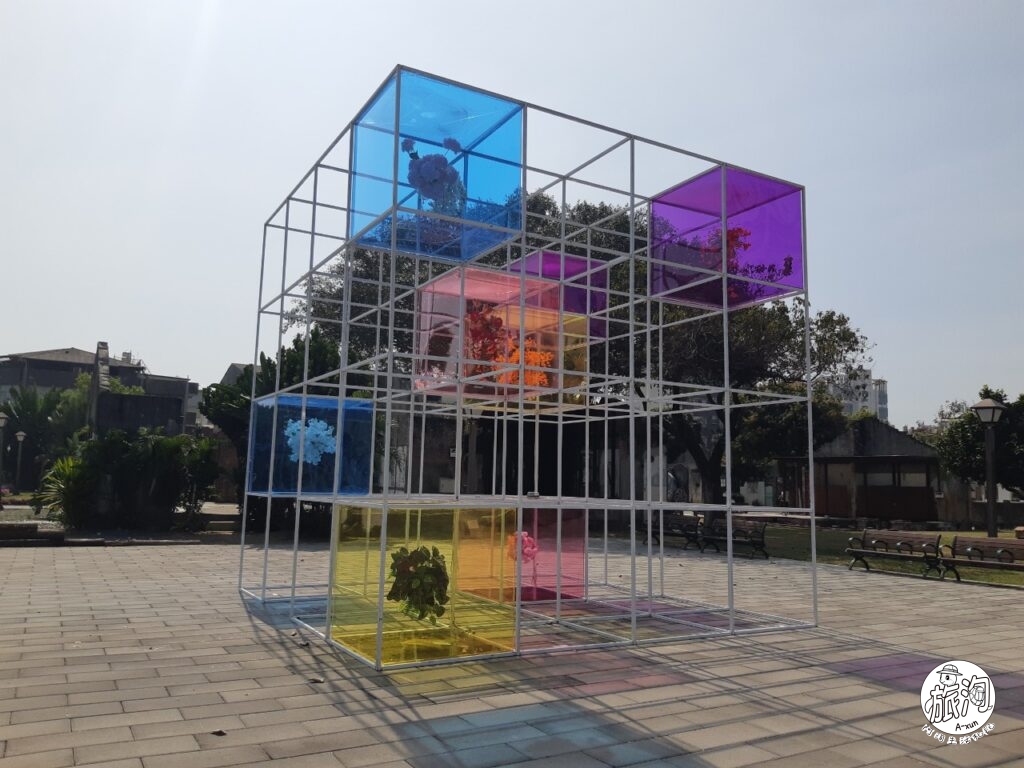 ▲《花立方》由64立方體所組成,嵌入透光版與花團,營造堆疊與錯落雅致之景∪・ω・∪