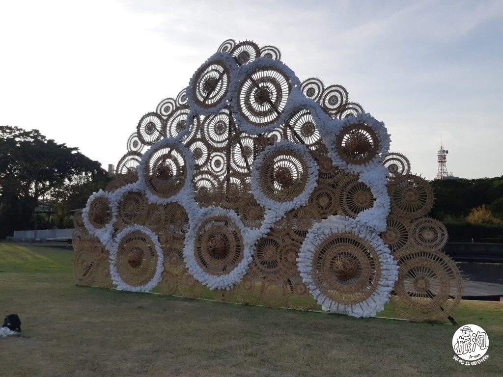 ▲《綻放織族-土地的漣漪》,以藤、竹、稻草編織成而,向外擴張的圓圈,就像是土地的聲音,寓意很美喔!