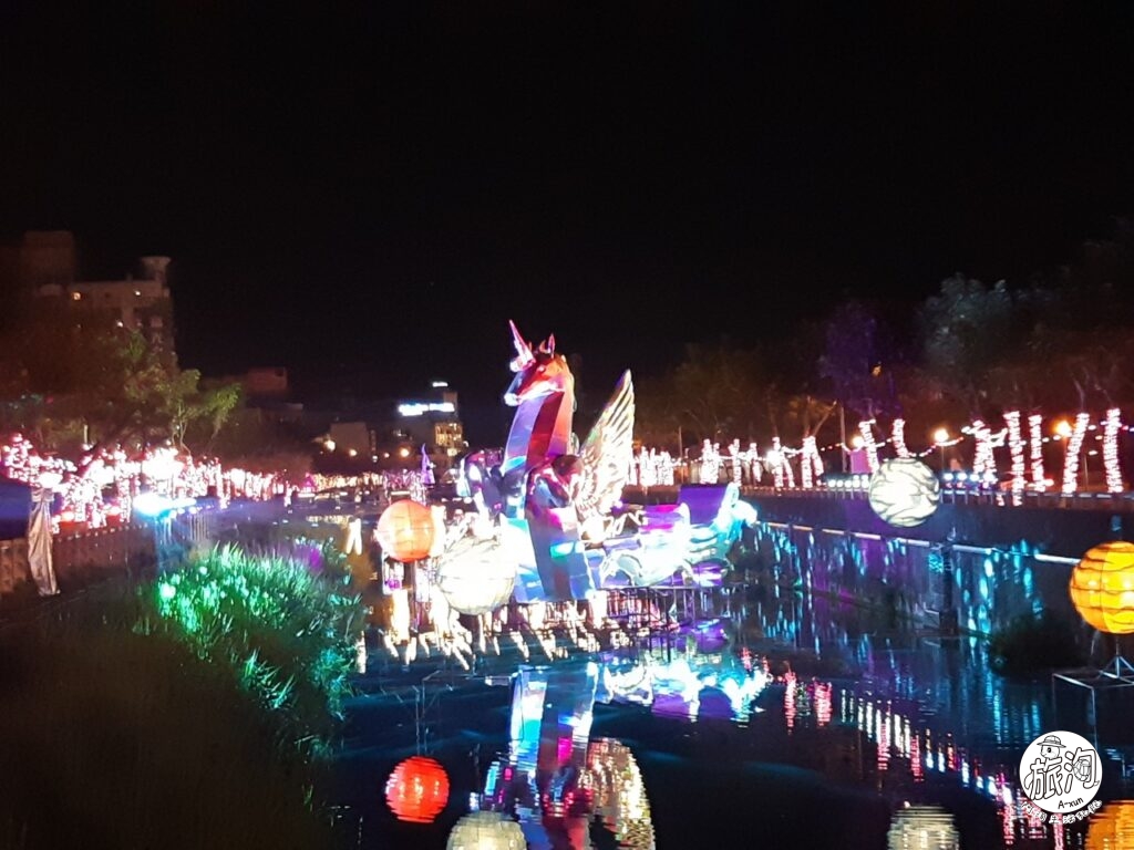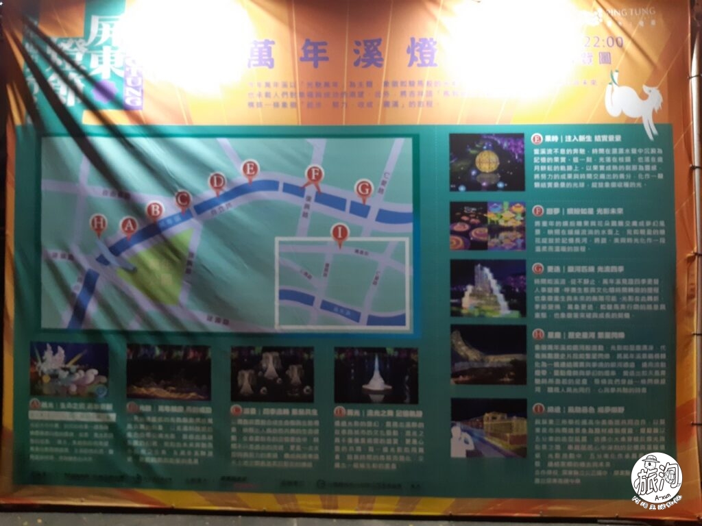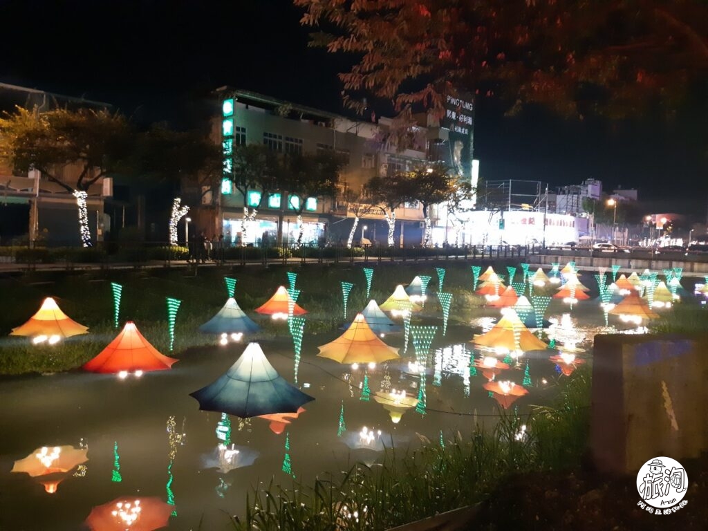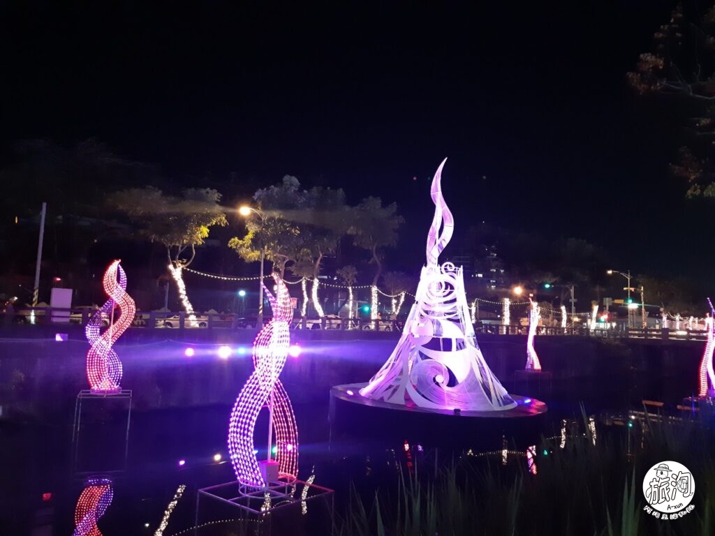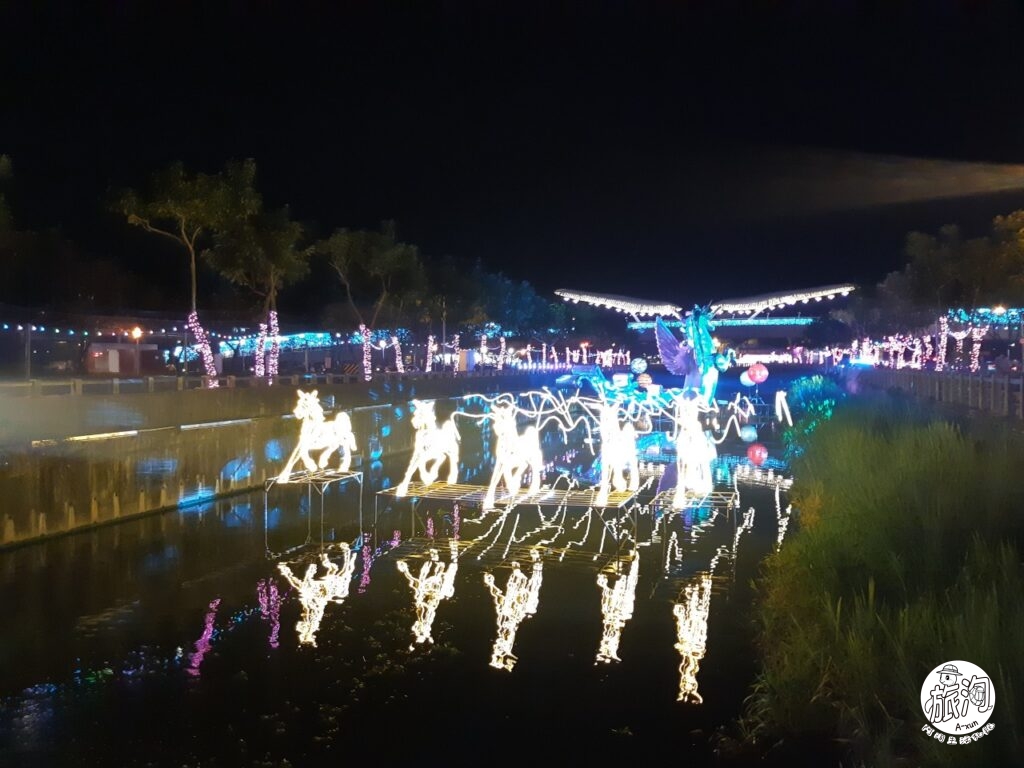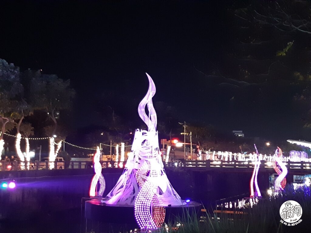 ▲萬年溪燈區很單純,沿著河道走,就可以幾乎看完所有燈飾(只有一組燈飾不在溪邊,看官們可以自行決定要不要全攻略,這天阿洵已經走不動了,所以沒有看《歸途》這個燈飾)