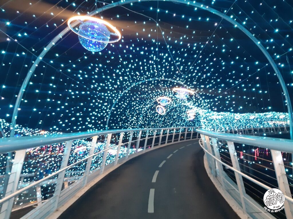 ▲上到景觀橋上,頭頂上會變成星光點點的金色,照亮漆黑的夜空( ੭ ˙ᗜ˙ )੭