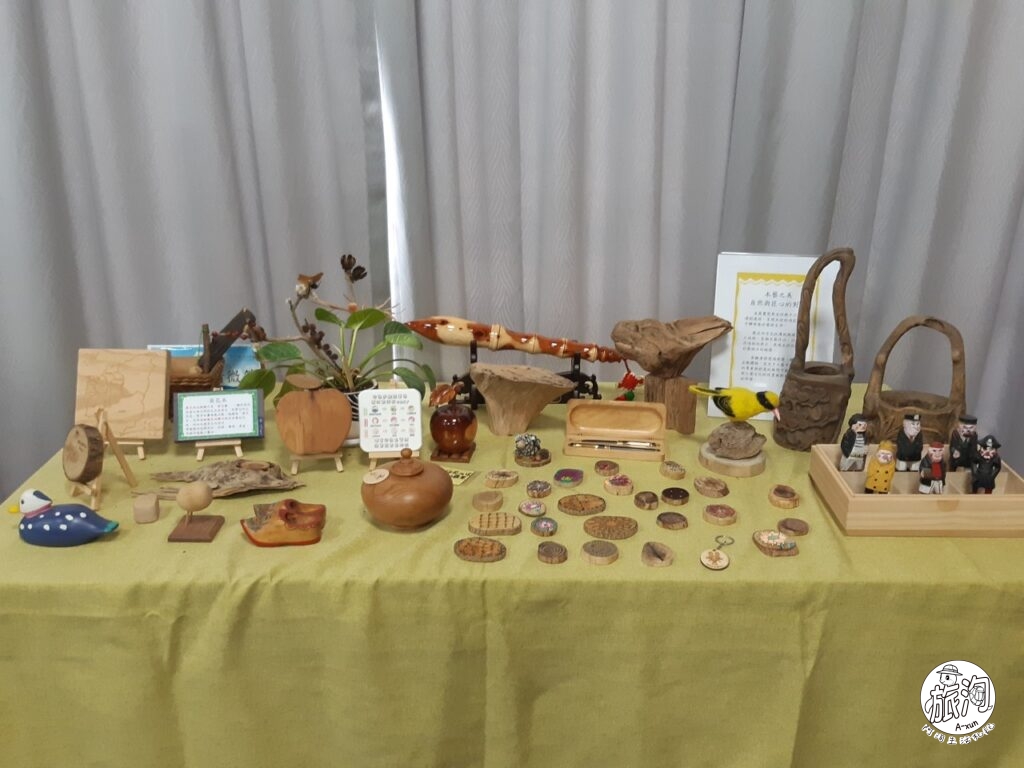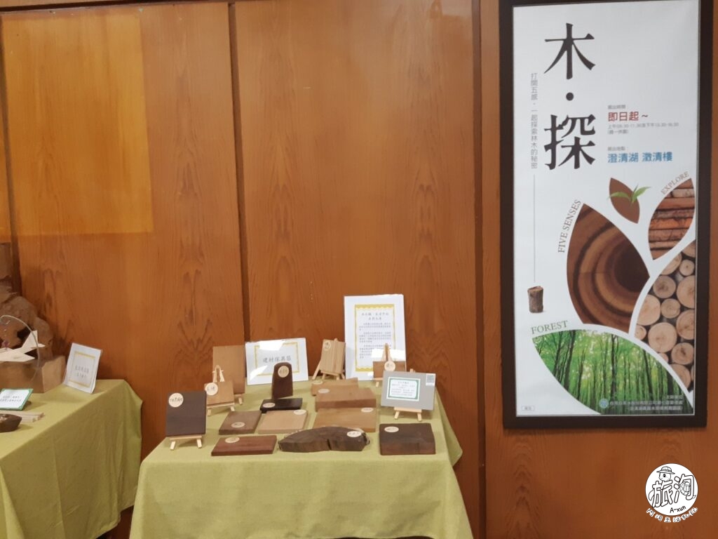 ▲展區不大,桌面上放有不同的木材⋋╏ ❛ ◡ ❛ ╏⋌