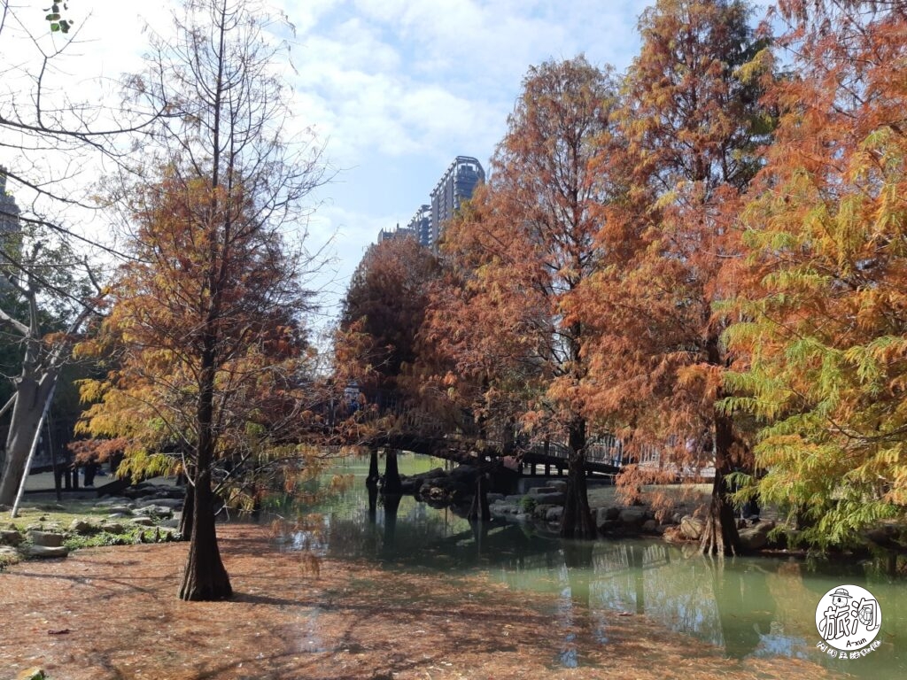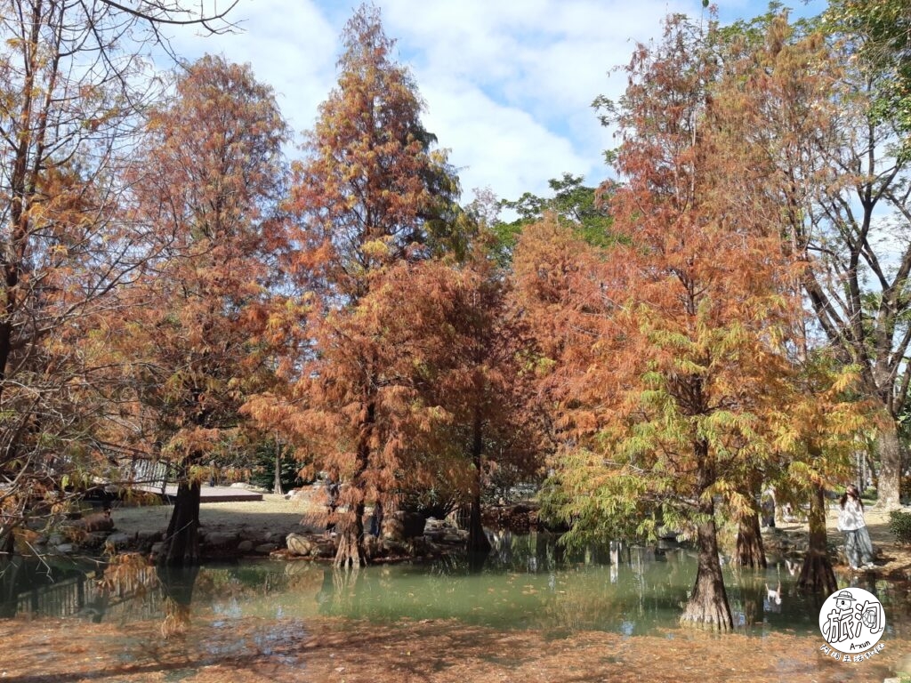 ▲趁著天氣很好,阿洵直接先衝美景區,就在公園的生態濕地區。挖賽!加上水景的落羽松就是不一樣耶( ⩌⩊⩌)✧