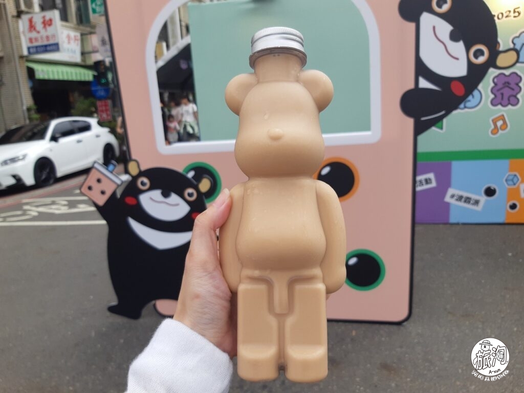 ▲買到手後,趕快與高雄熊合照留念吧,現場喝起來口感不錯喔୧༼ ヘ ᗜ ヘ ༽୨