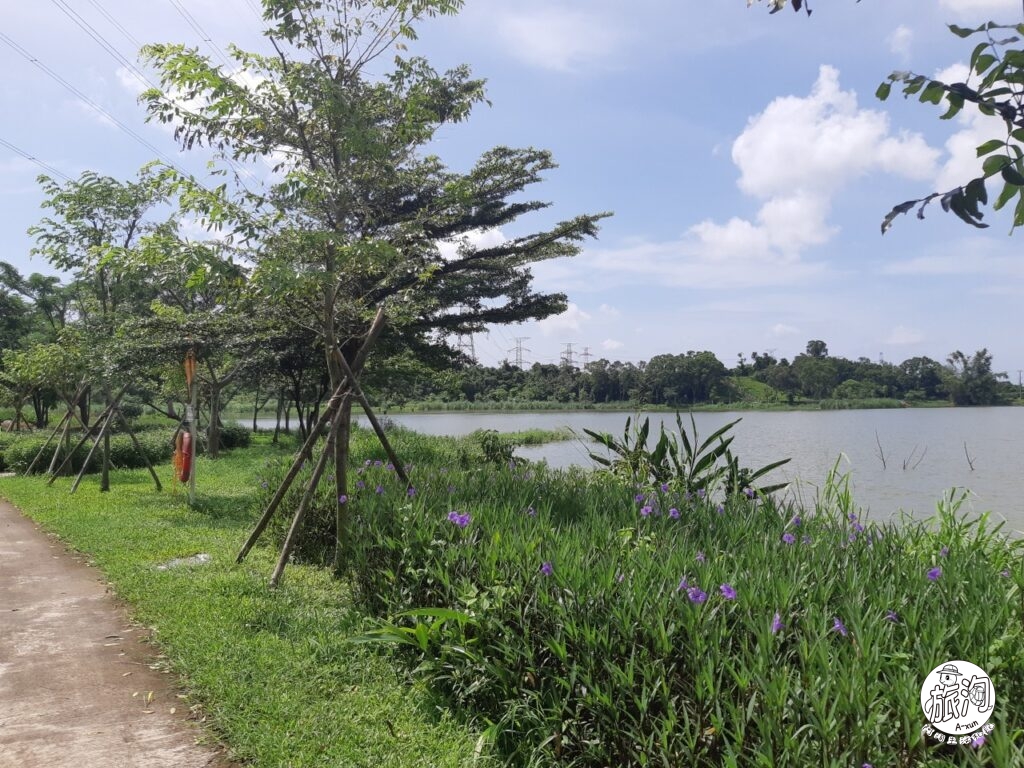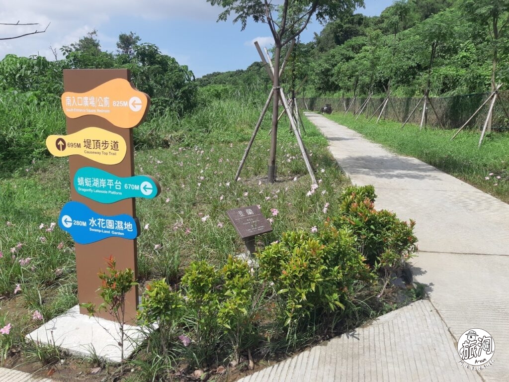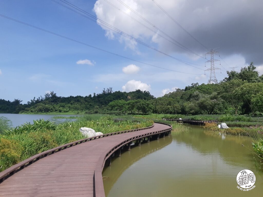 ▲觀音湖的地形相當簡單,就是沿著環湖步道走一圈就對了,中途會經過一些景觀,像是阿洵首先會抵達的就是水花園濕地o(^▽^)o