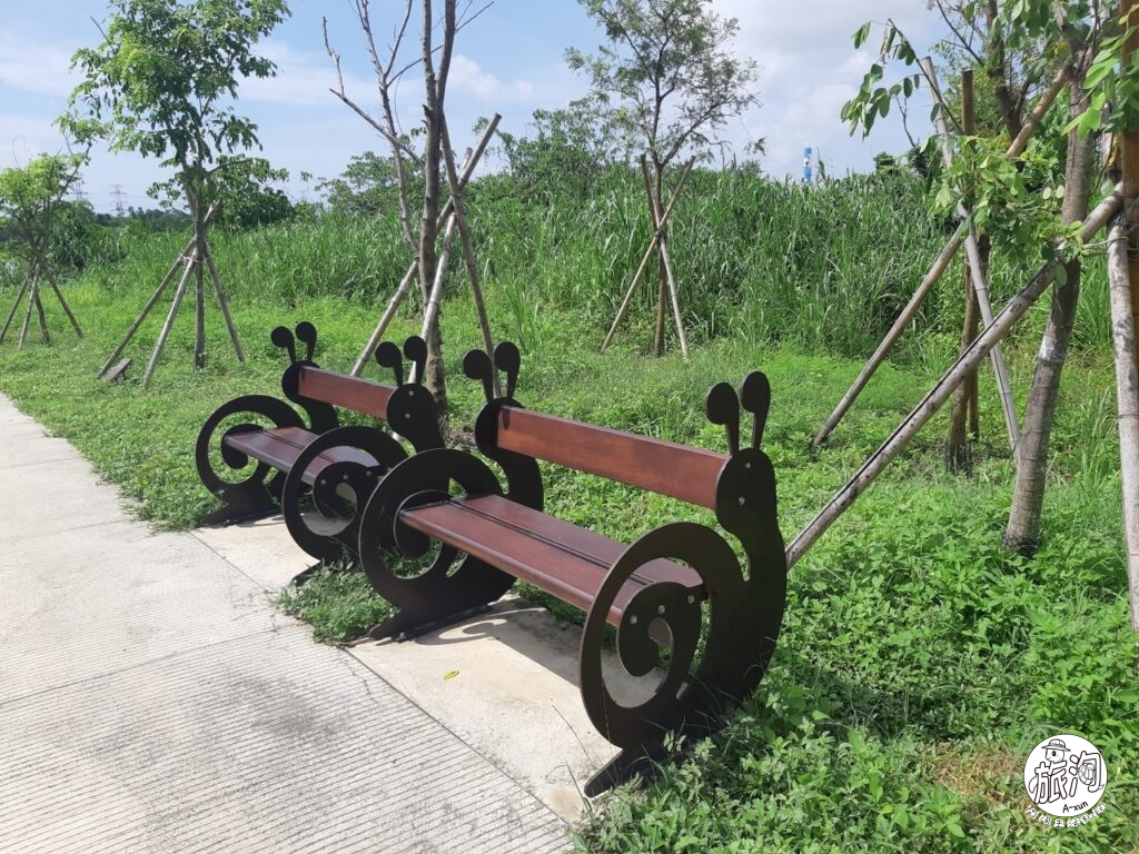 ▲公園中的座椅是蝸牛圖案的呢,真可愛!