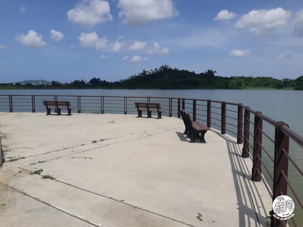 ▲來到一小塊觀湖平台,可惜前陣子大雨,湖邊雜草長得比較高,觀看效果不太佳༼≖ɷ≖༽