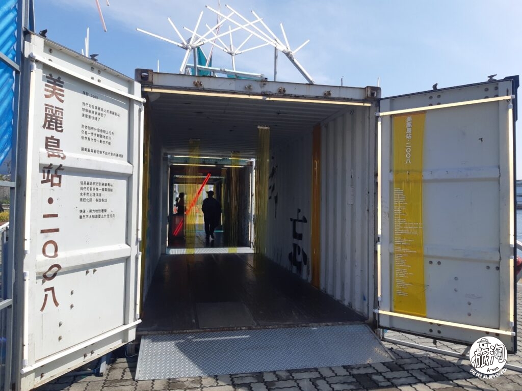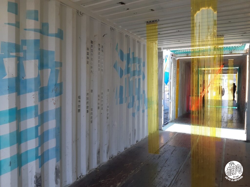 ▲貨櫃隧道中穿插台灣各時代的詩詞,再結合拍謝少年的歌曲「暗流」,讓觀眾走進時代的空間中◝(⁰▿⁰)◜