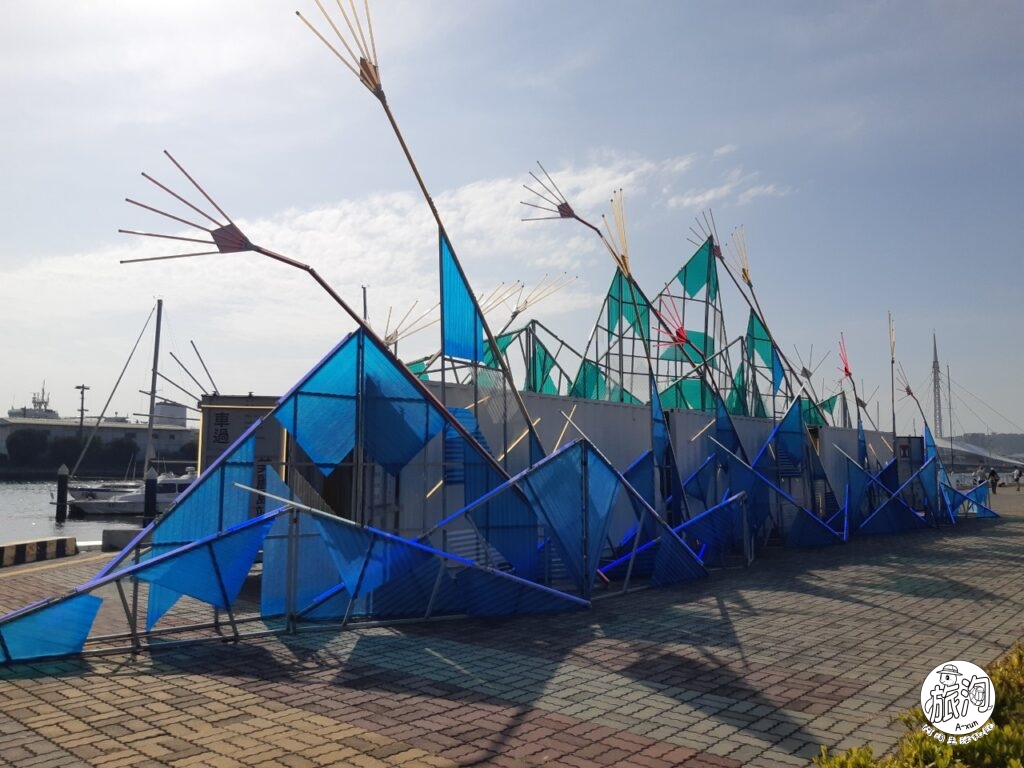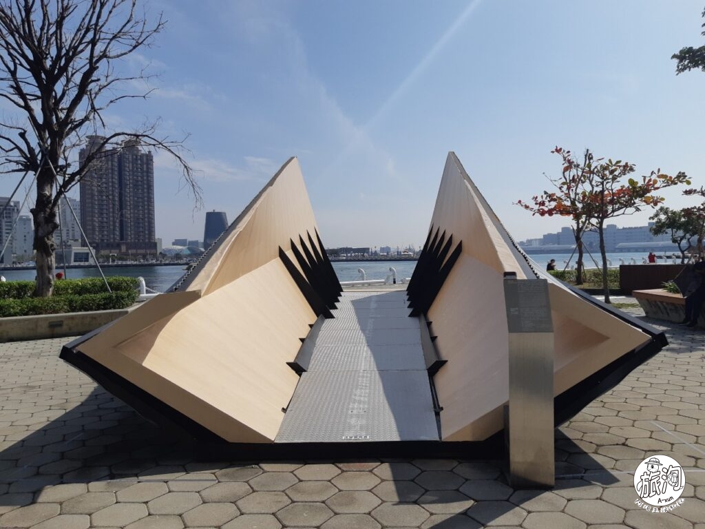 ▲《入港》藉由船頭劃破水面的意象,創造一段靠岸與穿越時空的體驗,由正面看會比較看得出來,稍微有點抽象的作品(* >ω<)