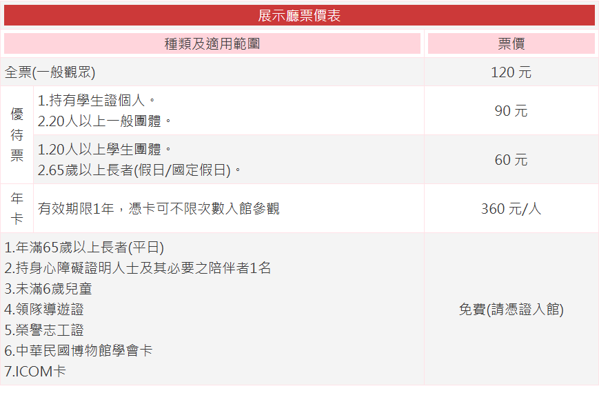 票價資訊https://www.nstm.gov.tw/Reference/VisitorInformation/Price.htm
