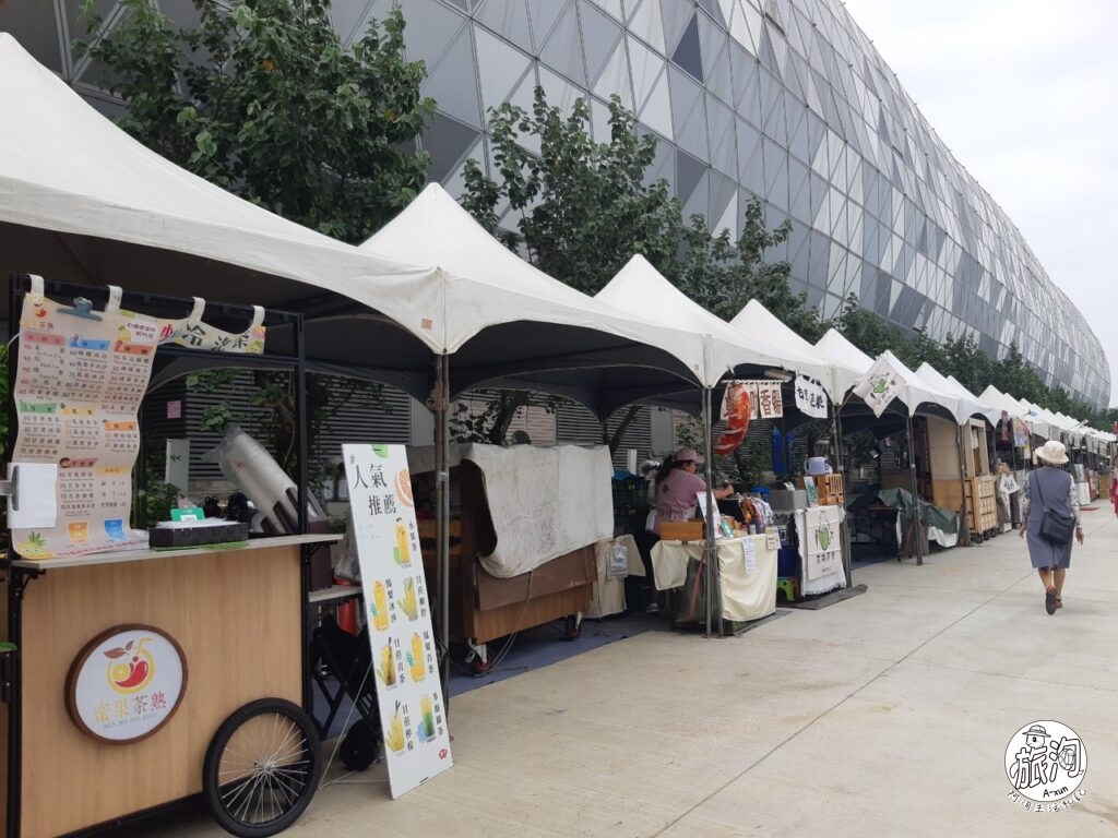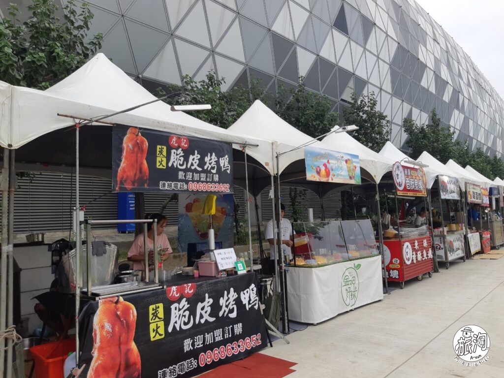 ▲當天阿洵到訪的時間較早,還有部分攤位還未出攤,不過大蓋逛一下,食物的總類還算多,一整排的美食也不怕會餓肚子٩(๑❛ᴗ❛๑)۶
