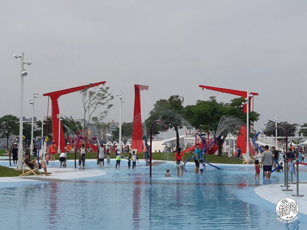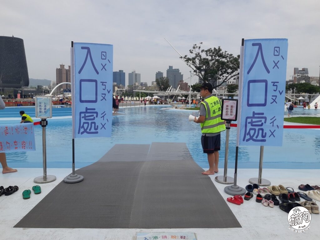 ▲現場已經有很多大小朋友進入戲水,露天的空間也可以讓家長隨時注意孩子的狀態,整個洗水空間周圍,也排了滿滿的工作人員(・∀・)