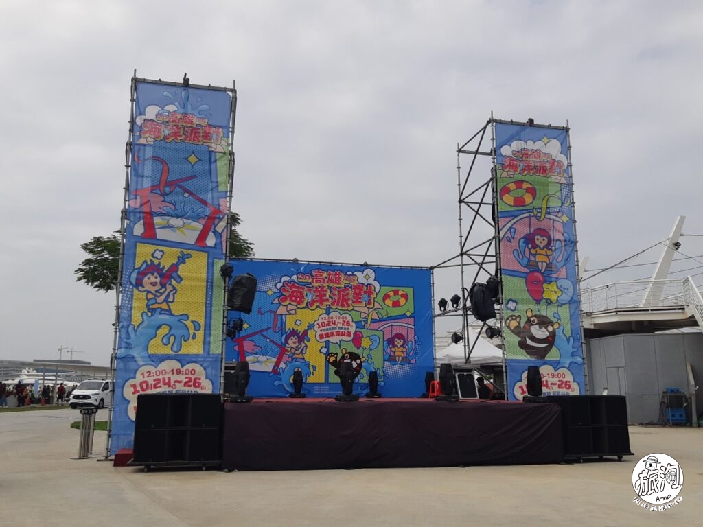 ▲2025高雄海洋派對當然會有表演,舞台已經陸續架設完成,想必晚上的氣氛會相當放鬆༼ •̀ ں •́ ༽