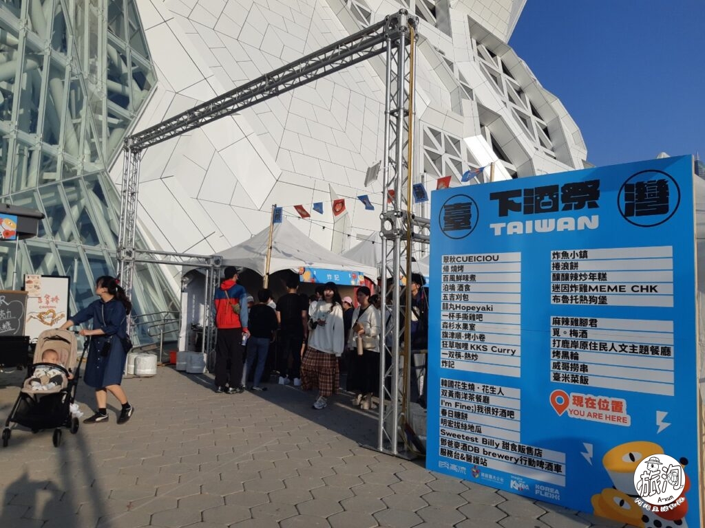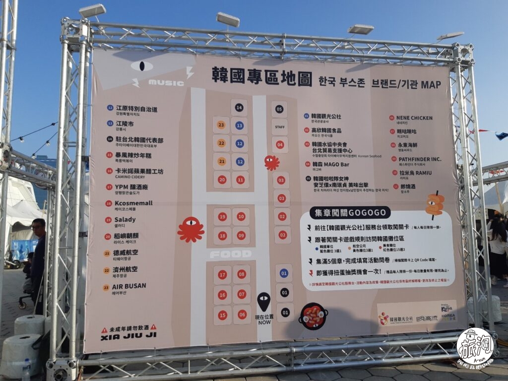 ▲現場的攤販區有地圖可以看,但實際上蠻快就可以走完,倒也不用特別關注,除非有已經鎖定要衝的攤位,或者有要搶那些優惠~另外,在後面一點的音浪塔前,有舉辦熱鬧的韓流舞蹈活動,讓民眾可以在聽到自己喜愛的韓團音樂,隨意加入,跳出自己的K-POP,蠻有趣的⸜(*ˊᗜˋ*)⸝