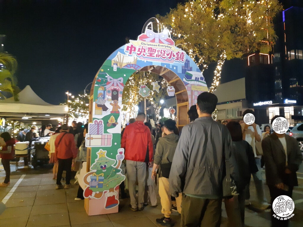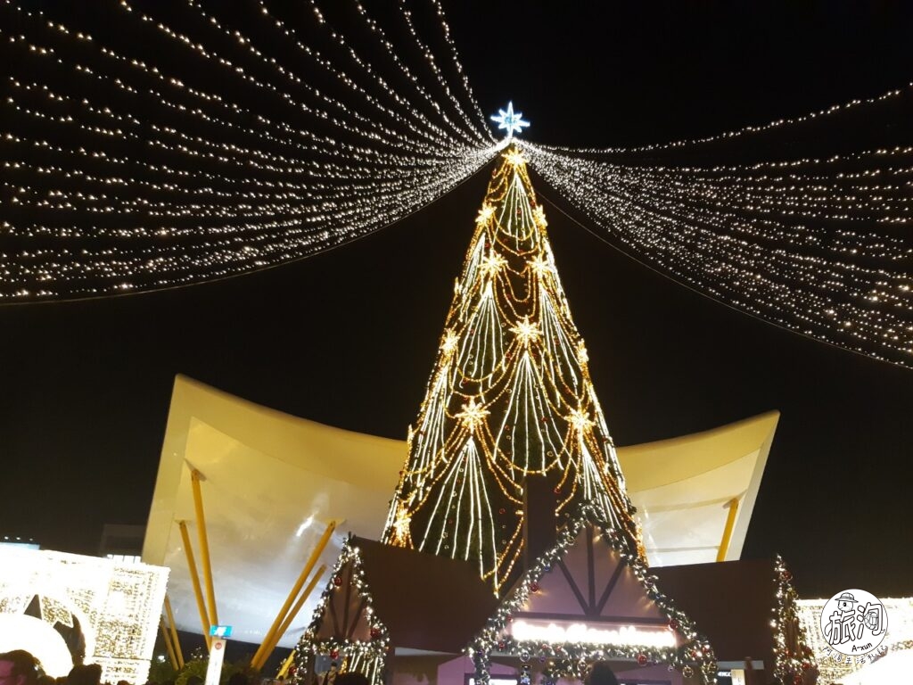 ▲這邊依然是受限於手機夜拍功能不好,看不太出來樹上的裝飾,這邊有一整排可愛的發光聖誕小屋裝飾喔~