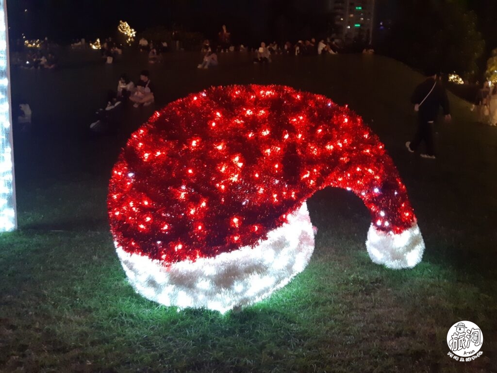 ▲從後面拍,可以更清楚的紀錄到高掛的燈光聖誕帽,也太可愛了吧(´・ω・`)