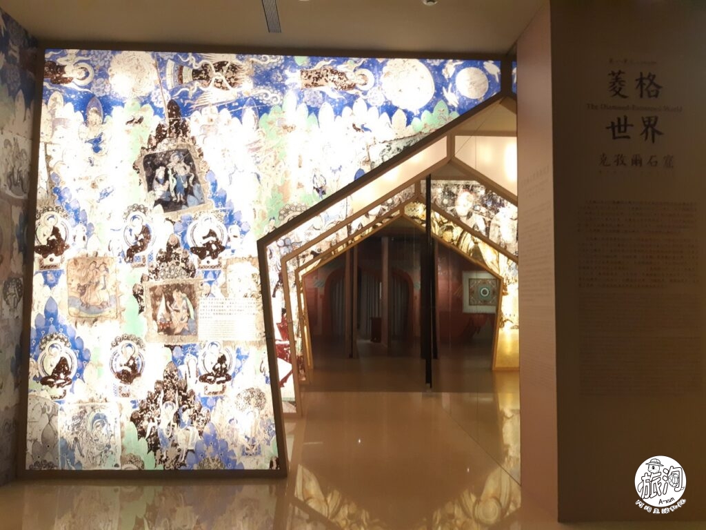 ▲光是門口的華麗光牆,就是克茲爾石窟的圖樣,紀載著各種生活故事、宗教故事等ʕʘ̅͜ʘ̅ʔ(2026.02.16更新)