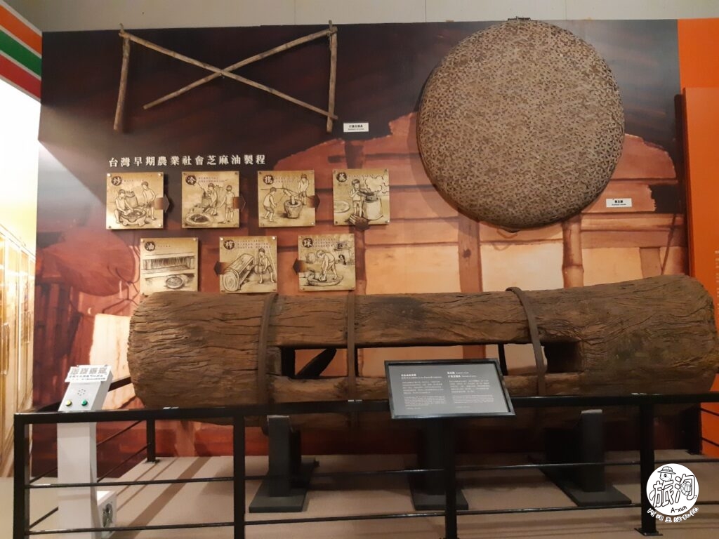 ▲早期台灣農家在收成芝麻、花生之後,送到油坊使用油車榨油、製作豆餅。榨油的人會透過撞擊楔型木栓來壓榨豆餅,以此擠出油脂ヾ(´︶`*)ノ♬